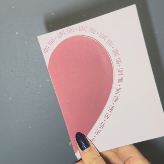 This minimalist Valentine’s Day card features a half-heart cutout opening, revealing the words “today, tomorrow, always” through the window beneath. A clean “I love you” message softly frames the heart, creating a design that feels modern, intentional, and deeply meaningful.
